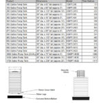 | Product | Dimensions | Model | Total Gallons | Area (in^2) | Gallons/in. | External Hight (in.) | Internal Hight (in.) | Ballast Dia. (in) | Concrete Thickness (in) | Weight (lbs) |